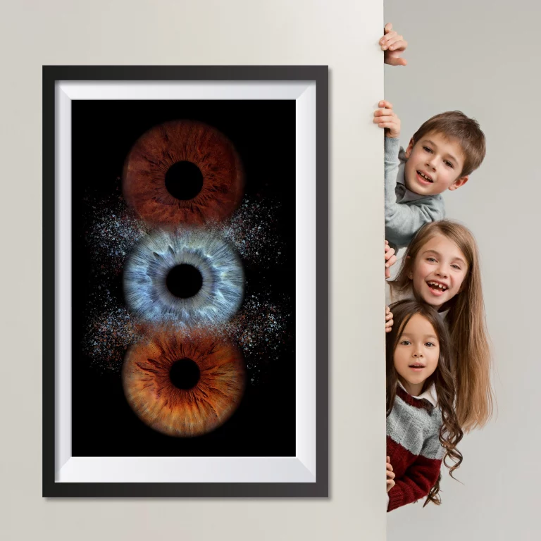 Tvoj iris – tvoja priča. Nudimo mogućnost kombinovanja više očiju (za parove, porodice), umetničkih efekata, dodatnih svetlosnih detalja i pozadina koje naglašavaju tvoj karakter i stil.
